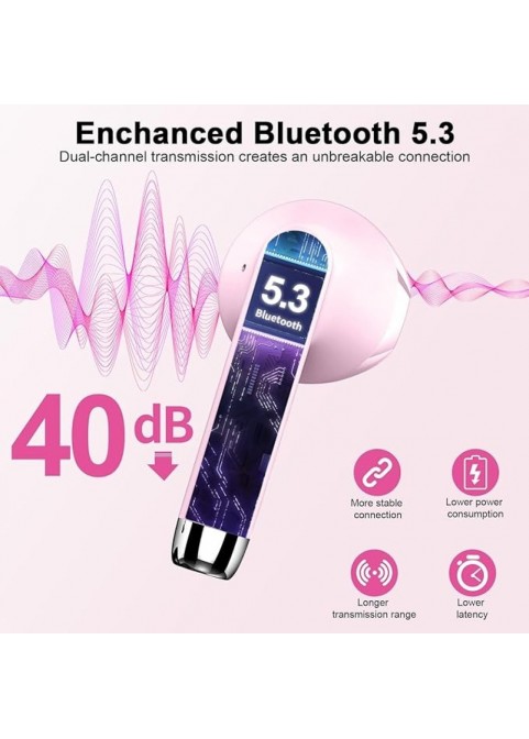 Bluetooth 5.3 Earbuds, 4-Mic ENC, 56H Playtime, Pink